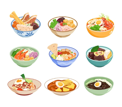 "The concept of bowl food is not new, and its origins can be traced back to ancient times. In many Asian cultures, such as Chinese, Japanese, and Korean, bowls have been a staple food vessel for centuries. The traditional Japanese rice bowl, known as 'donburi,' is a prime example of this. Donburi typically consists of a bowl of steaming hot rice topped with grilled meat, vegetables, and a savory sauce.