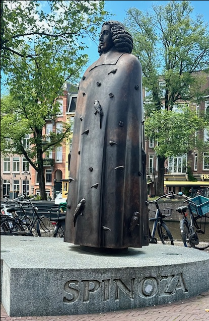 When I was in the fourth grade my mother worked on Spinoza Street in Tel Aviv - not too far from where I am now, writing this Bulletin. I asked her once who he was and without hesitation she said "the smartest man who ever lived." From what I read, Thomas Jefferson felt the same way. I stopped to have a chat with him, his impressive statue surrounded by canals and bicycles (like everything in Amsterdam). I thought he might have an inspiring thought. Sadly all I got was a recommendation to go and have the apple pie at 43 Winkel Street. Covered in whipped cream, the world is easier to swallow. A few hours later, having spent a 63 eye-opening hours on the ground, I boarded a flight to Tel Aviv. Europe and Israel are a little like cause and effect. In the coming weeks I may shed some more light on what that means to me in 2024.